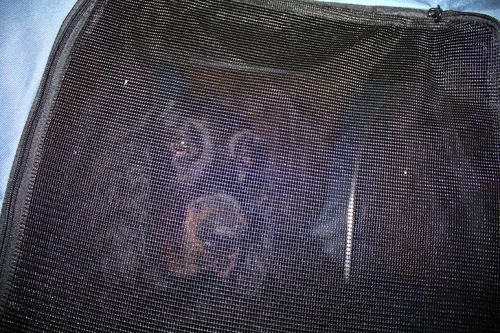 Als es dann losging, wurde natürlich die Klappe mit einem Netz verschlossen, damit der Hund