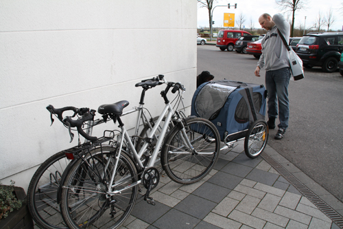 2 Fahrrädern und 1 Hänger ... ziemlich umständlich.